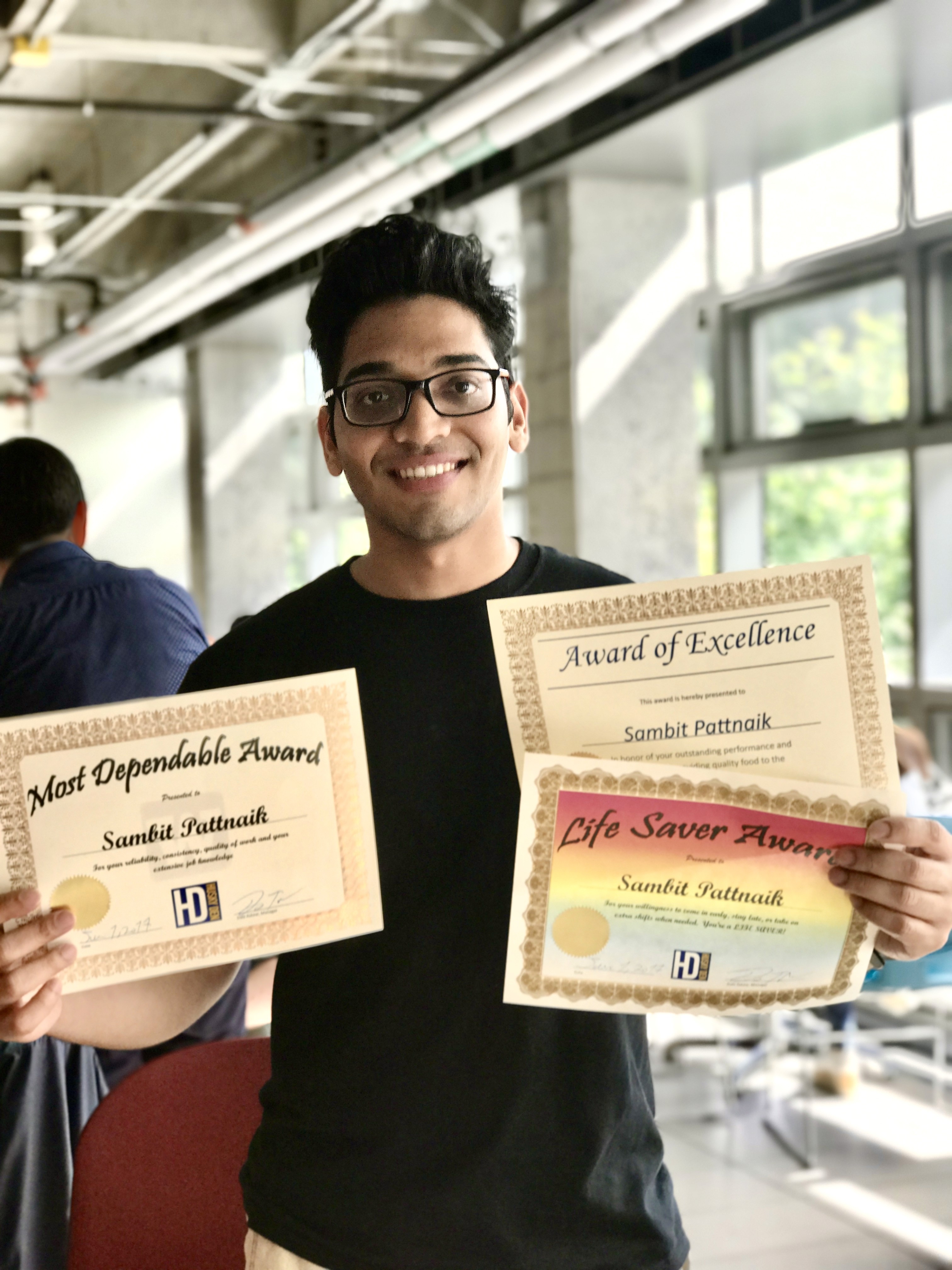 I worked in food hospitalityโbackbreaking early shifts, late nights, juggling work and coursework. But I met genuine people there, all hustling. I won three awards: Most Dependable, Life Saver, Award of Excellence. Not design awards, but proof I could show up, work hard, and earn trust.